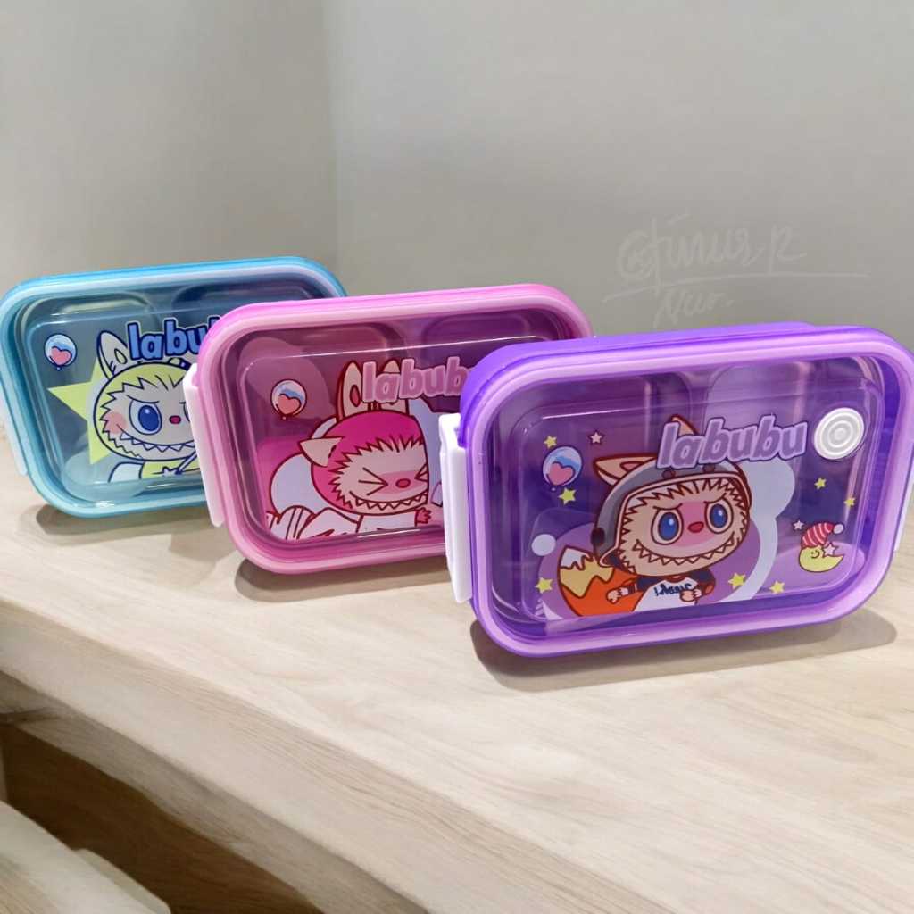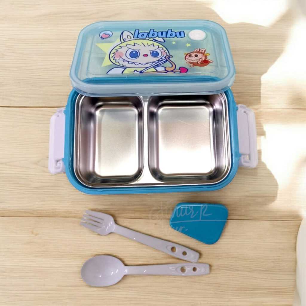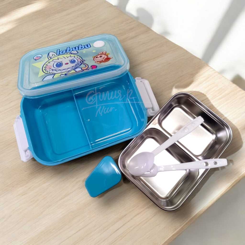LUNCH BOX ANAK LUCU KOTAK BEKAL LABUBU STAINLESS 2 SEKAT FREE SENDOK KAPASITAS 500ML KODE 5174