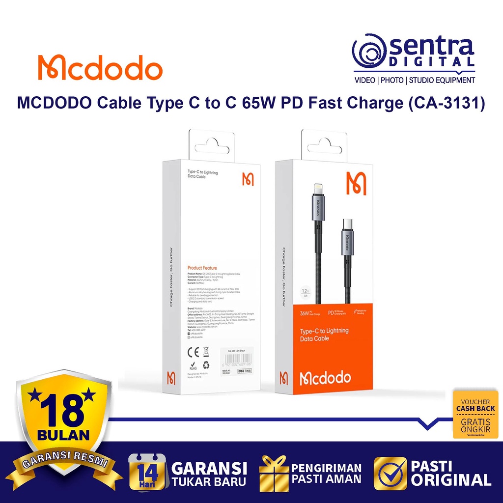 MCDODO Cable Type C to C 65W PD Fast Charge ( CA-3131 ) 1.5m