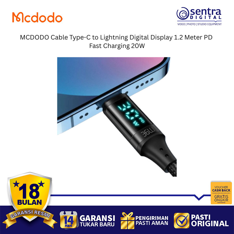 MCDODO USB-C to Lightning Cable CA-1030 1.2M Smart Digital Display Quick Charge Data iPhone iPad Pro