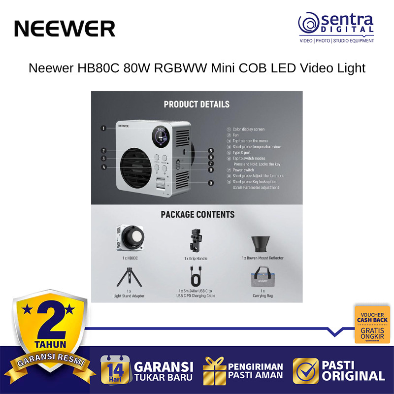 Neewer HB80C 80W Mini COB LED Video Light RGBWW Bowens Mount Compact & Powerful