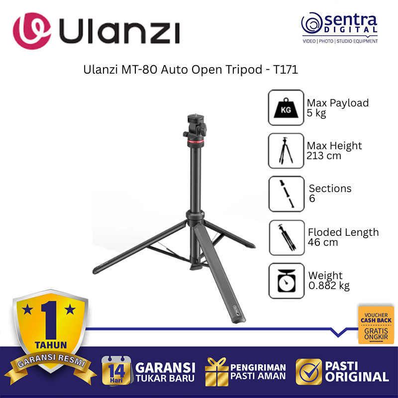 Ulanzi MT-80 Auto Open Tripod – Ringan & Cepat Lipat Foldable & Fast Setup
