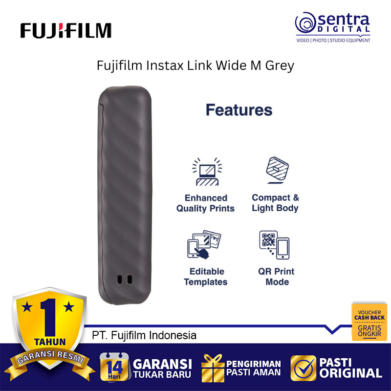 Fujifilm Instax Link Wide M Grey Wireless Photo Printer | Large Format | Portable | Bluetooth | iOS Android App