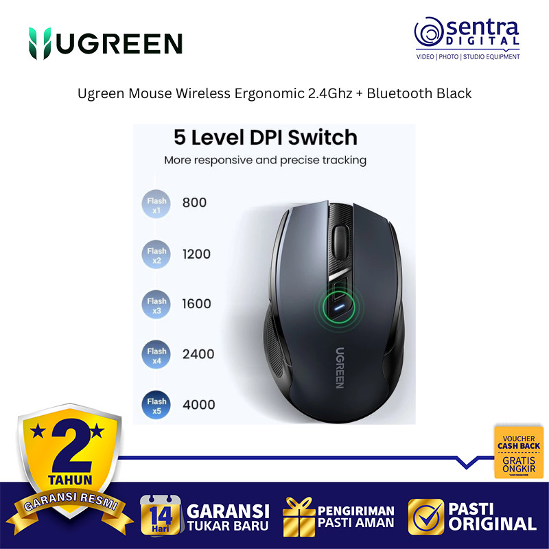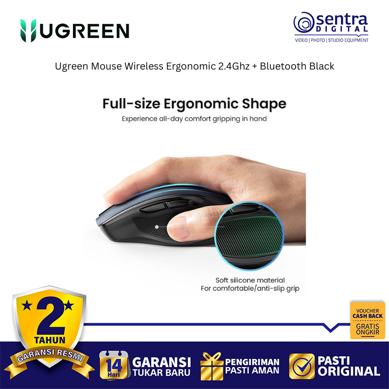 Ugreen Ergonomic Wireless Mouse Bluetooth 5.0 2.4G Dual Connection | 4000 DPI | Silent Click - 90855 Black