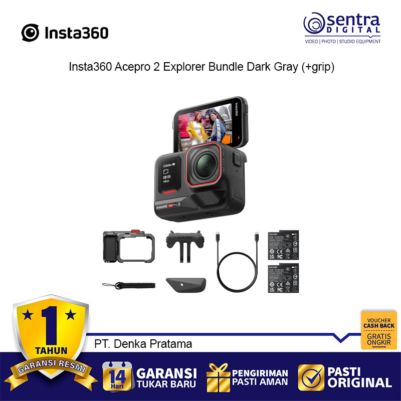 Insta360 Ace Pro 2 Explorer Bundle Dark Gray 8K AI Action Camera Plus Grip Waterproof