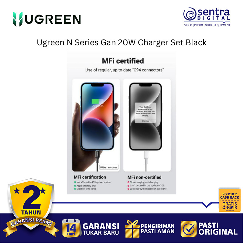 Ugreen 20W GaN Charger 65003 Black Fast & Safe Power Delivery USB-C Adapter for Phone and Tablet