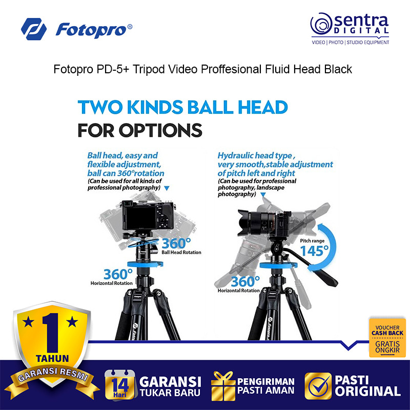 Fotopro PD5+ Professional Video Tripod Fluid Head Black