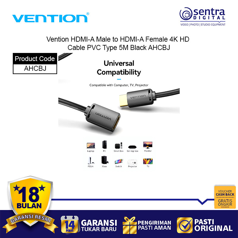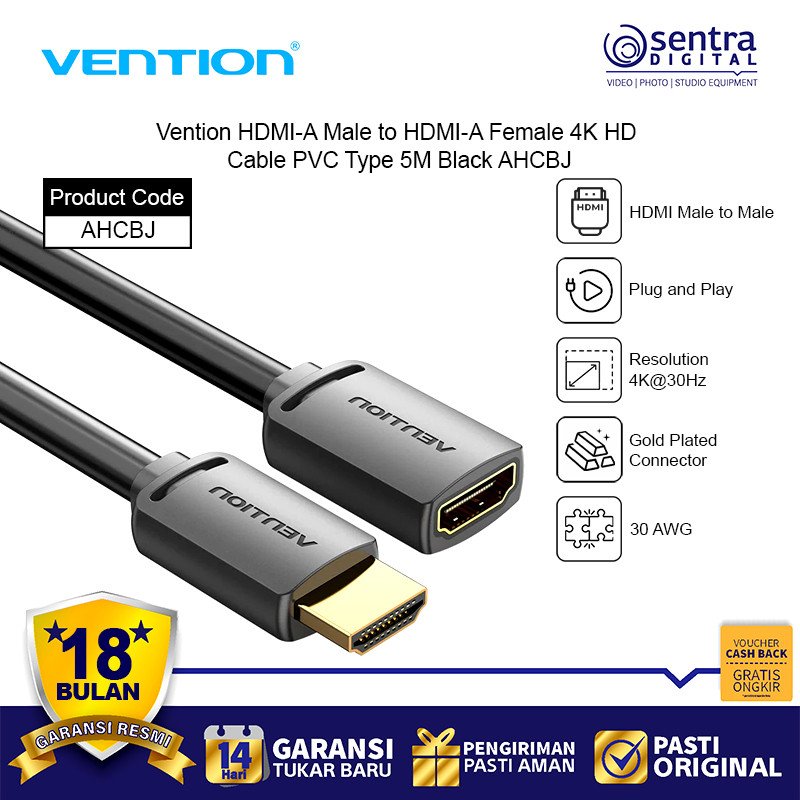 Vention HDMI Kabel Perpanjangan 5M Male to Female 4K Black AHCBJ