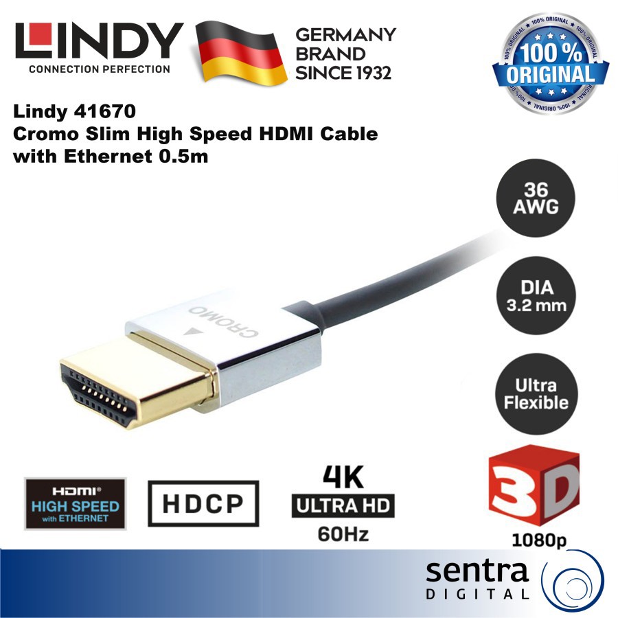 Lindy Cromo Slim High Speed HDMI Cable with Ethernet 0.5m - 41670