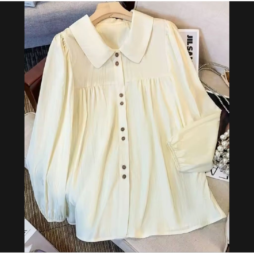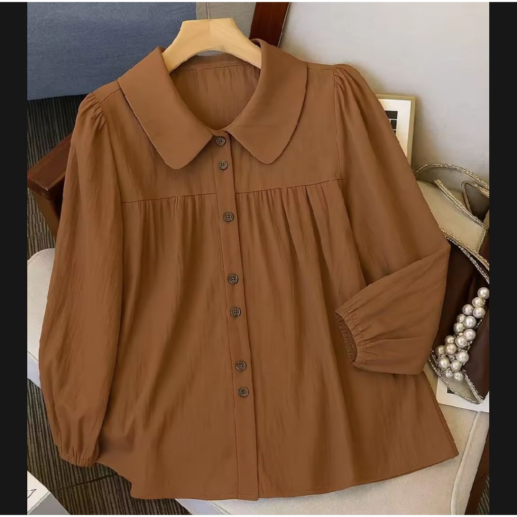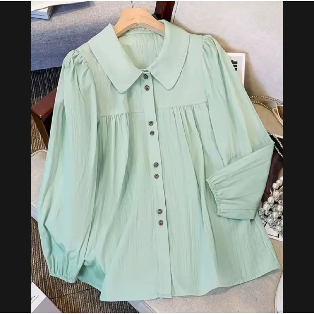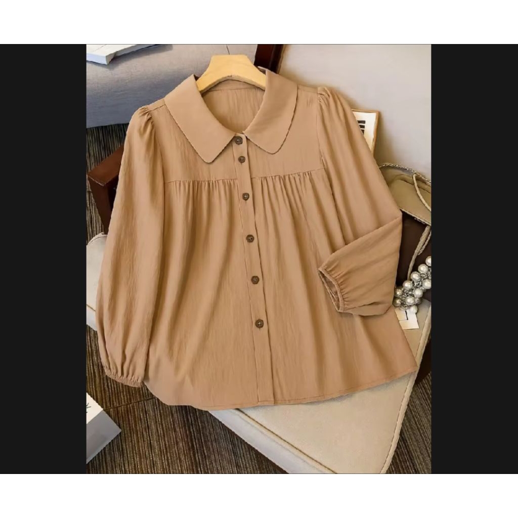 atasan kemeja wanita serina blouse korean style terbaru polo linen polos lengan karet kemeja casual
