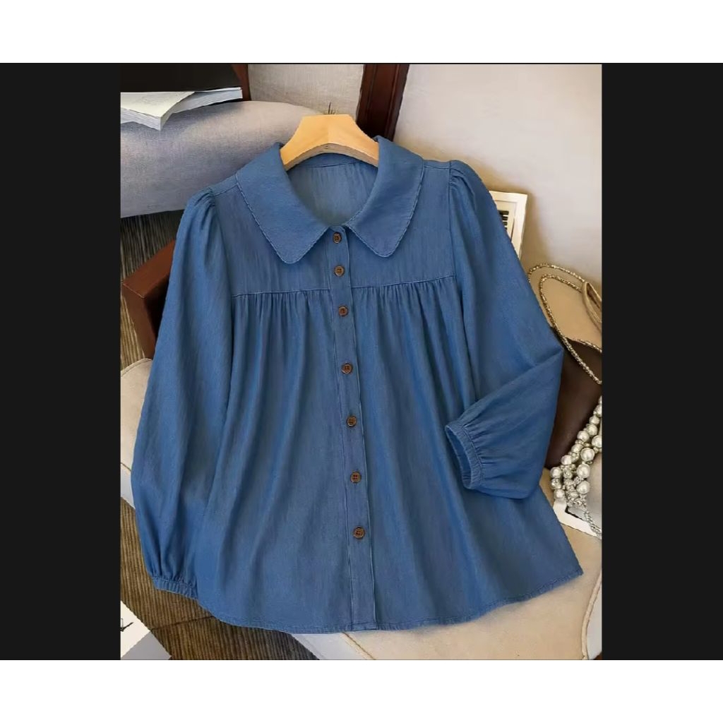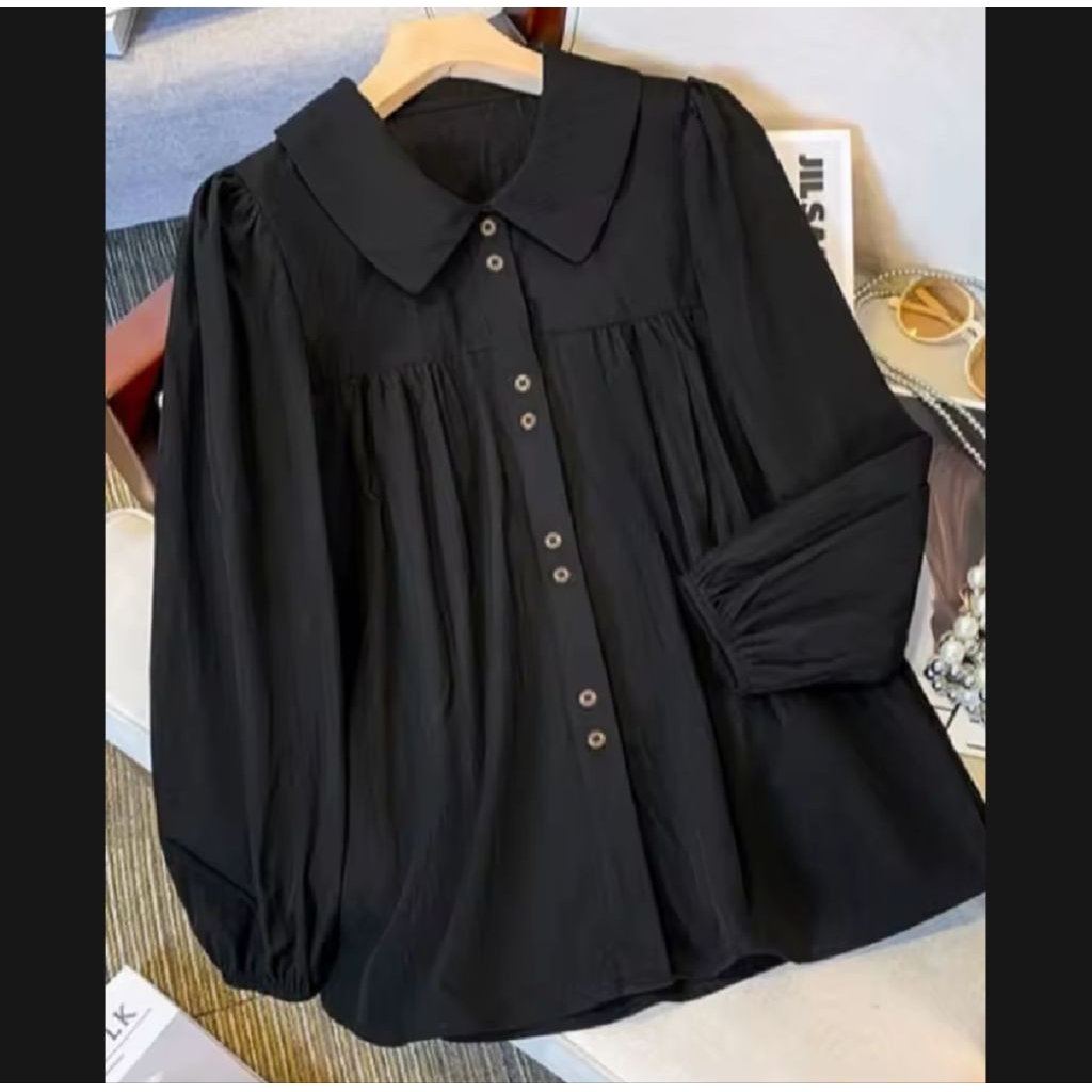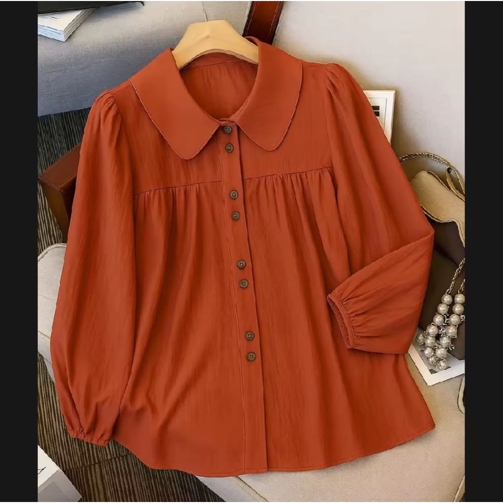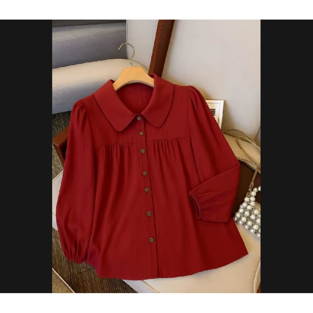 atasan kemeja wanita serina blouse korean style terbaru polo linen polos lengan karet kemeja casual