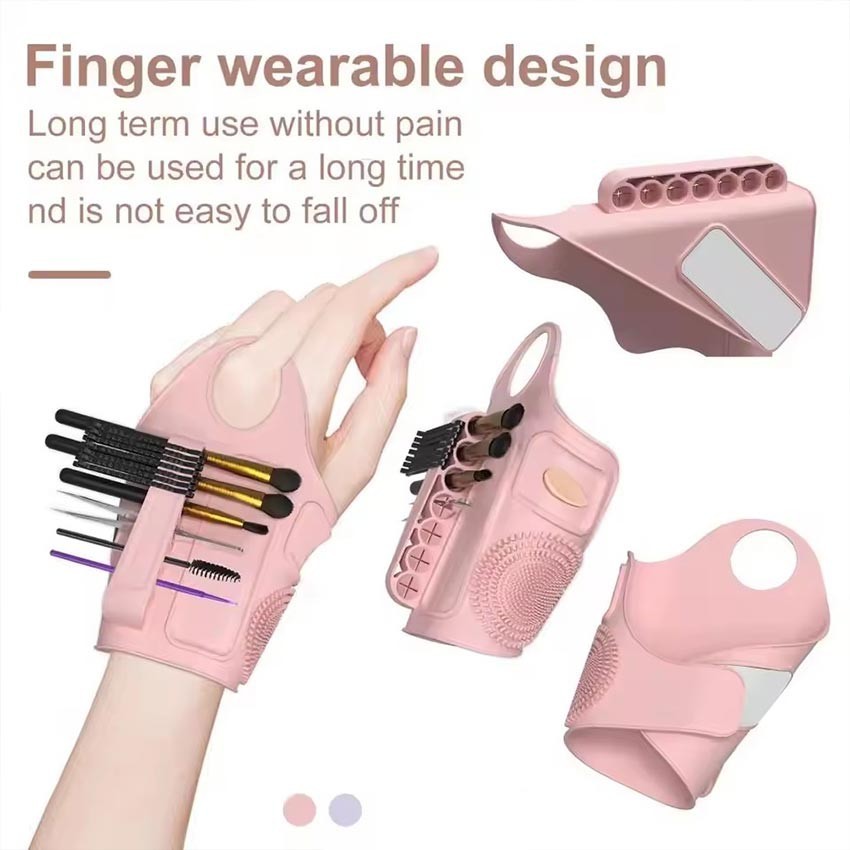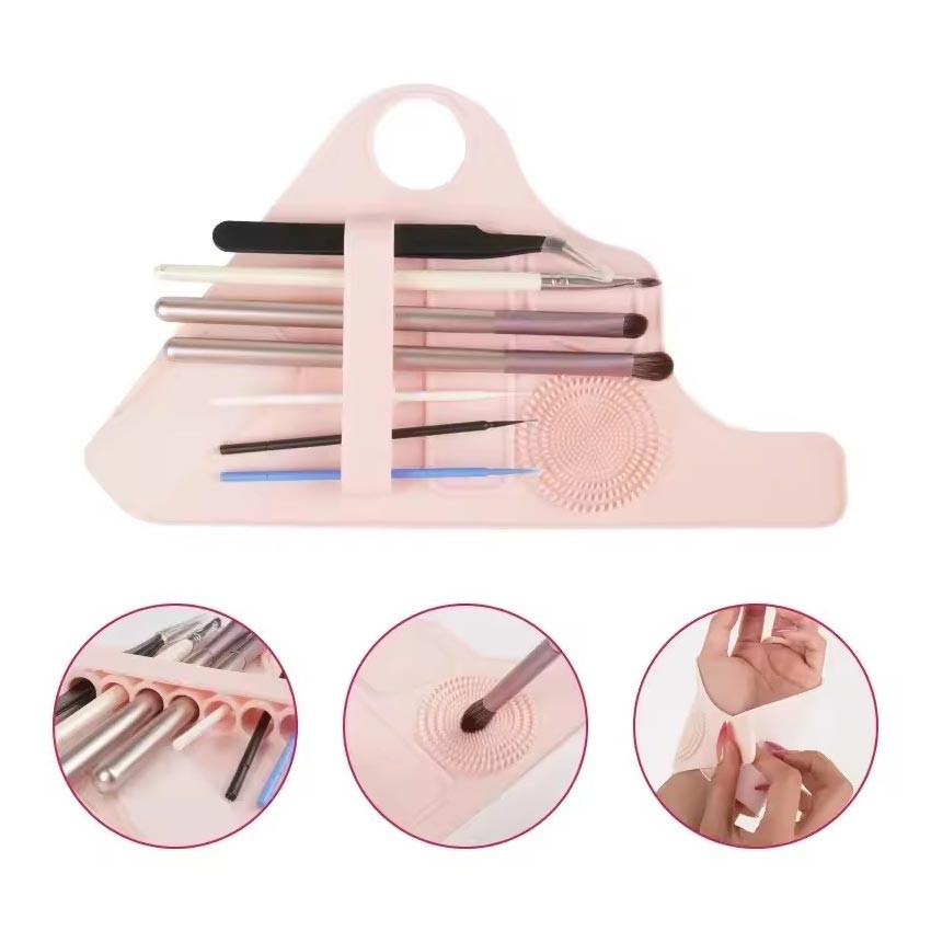 Alat Makeup Portable + Cuci Kuas - Gelang Tangan Makeup Warna Ungu/Pink, Cocok untuk Eyebrow Pen & Penjepit (Anti Slip, Mudah Dibersihkan)