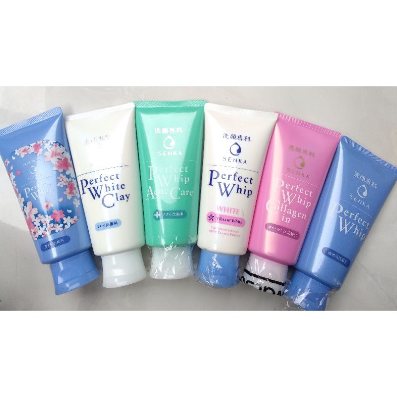 Senka Perfect Whip | Acne Care | Vibrant White | Collagen | Perfect White Clay Pink Facial Wash Foam