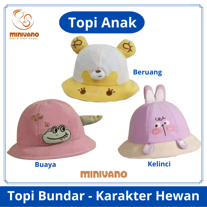 Topi Anak - Bulat Bundar - Motif Hewan Lucu - Model Sunny
