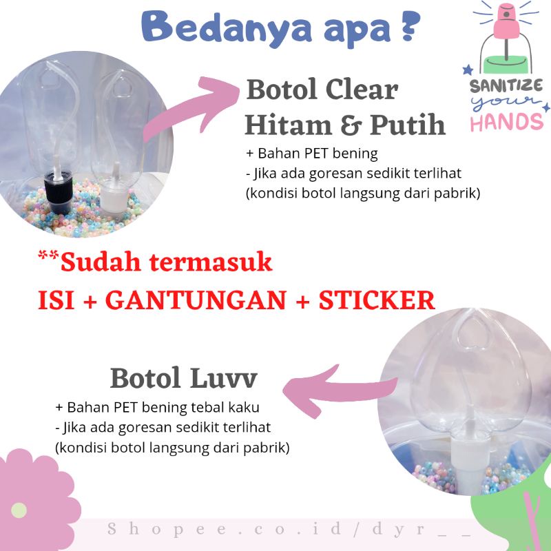 Botol Refill Hand Sanitizer Gantung SPRAY love 30ml 50ml Premium Unik Stylish Praktis +isi bonus sticker