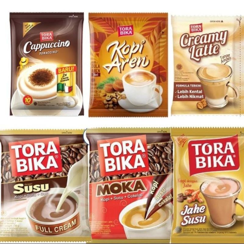 TORABIKA CAPPUCCINO AREN CREAMY LATTE SUSU JAHE DUO TORA CAFE GILUS MIX