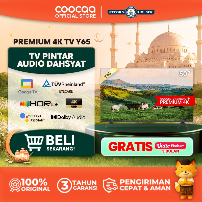 NEW COOCAA TV 50 inch Y65 - 4K GOOGLE TV - Dolby Audio - Eye Care - HDR10 - Find Remote - (COOCAA 50Y65)