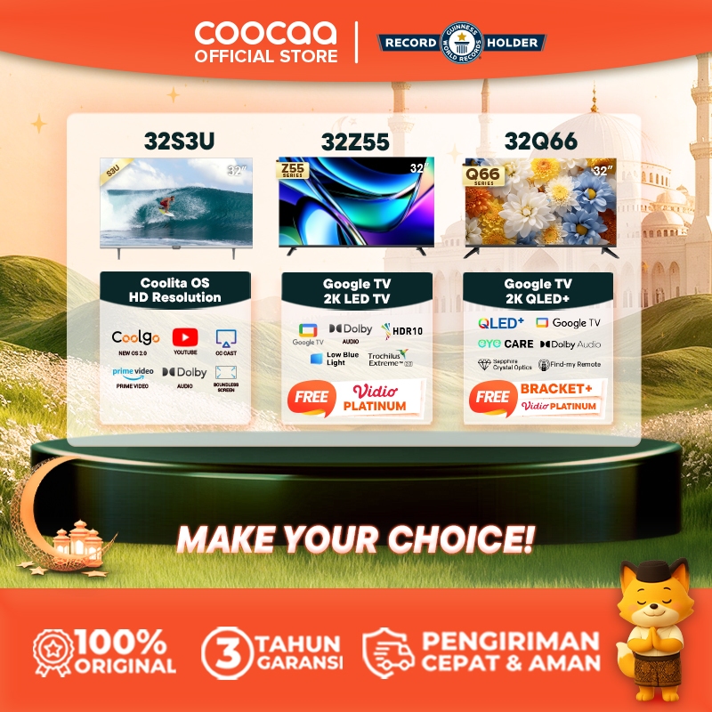 COOCAA 32 inch S3U Smart TV - Digital TV - Dolby Audio - Youtube - Mirroring - Flick Free - Boundless - WIFI - HD - USB/AV/LAN - OS Coolita (COOCAA 32S3U)