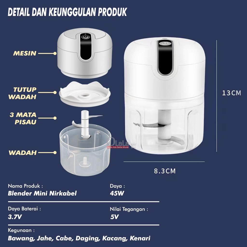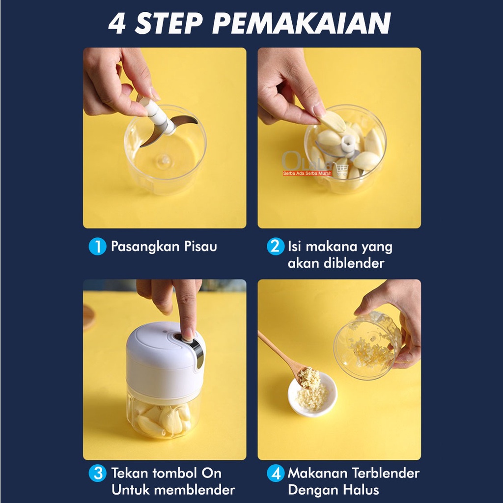 Olala Portable Mini Chopper USB OLL-3319 Blender Praktis Serbaguna Pemotong Bawang Bumbu & Makanan