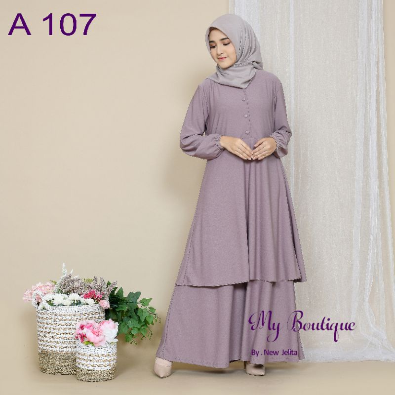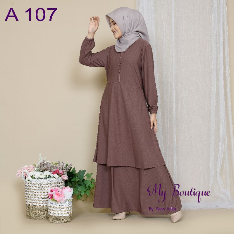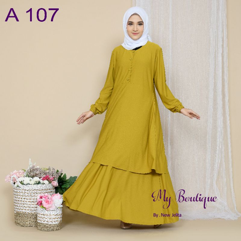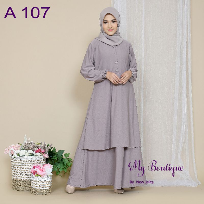 My Boutique Fashion Gamis A107 Polos Kancing Busui Friendly Stella Crepe Premium Gamis Malaysia