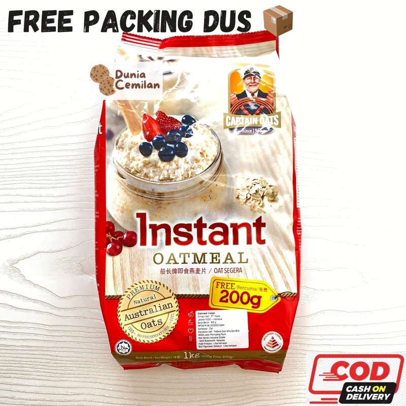 [TERMURAH!] Captain Oats INSTANT Oatmeal 1 KG - Oat Sehat (800gr + FREE 200gr)