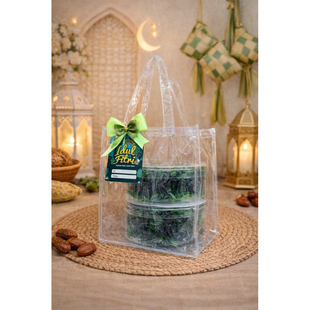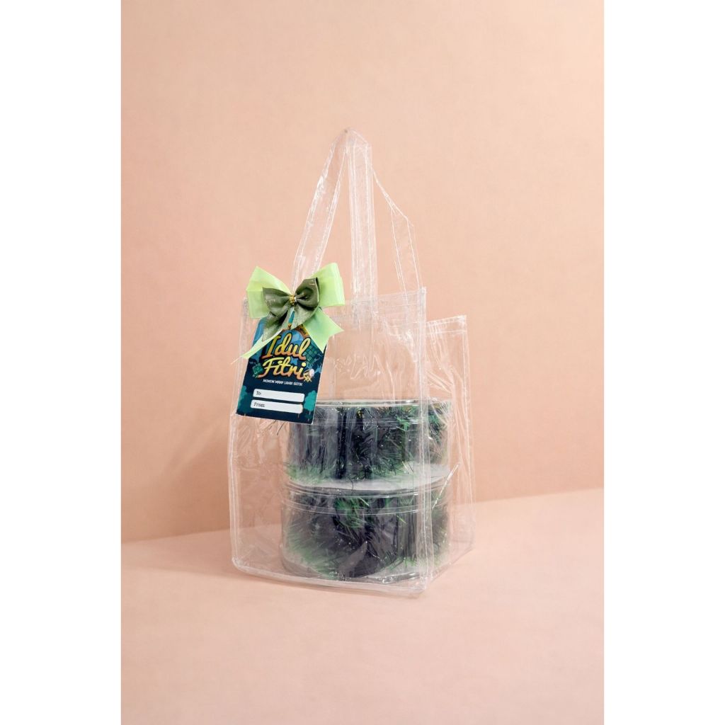 (isi 10pcs) Tas Mika Transparan uk 15x15x20cm muat Toples Nastar 500ml untuk hampers idul fitri