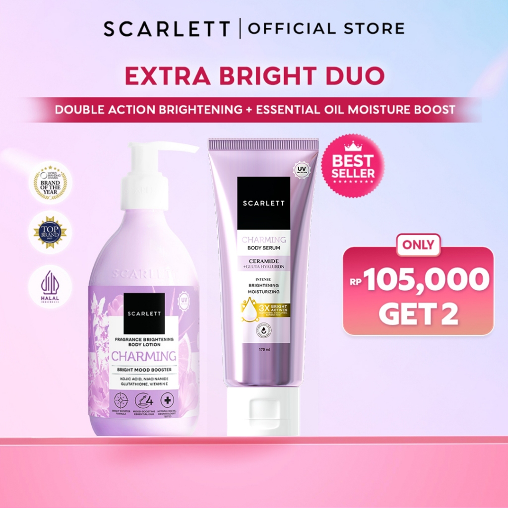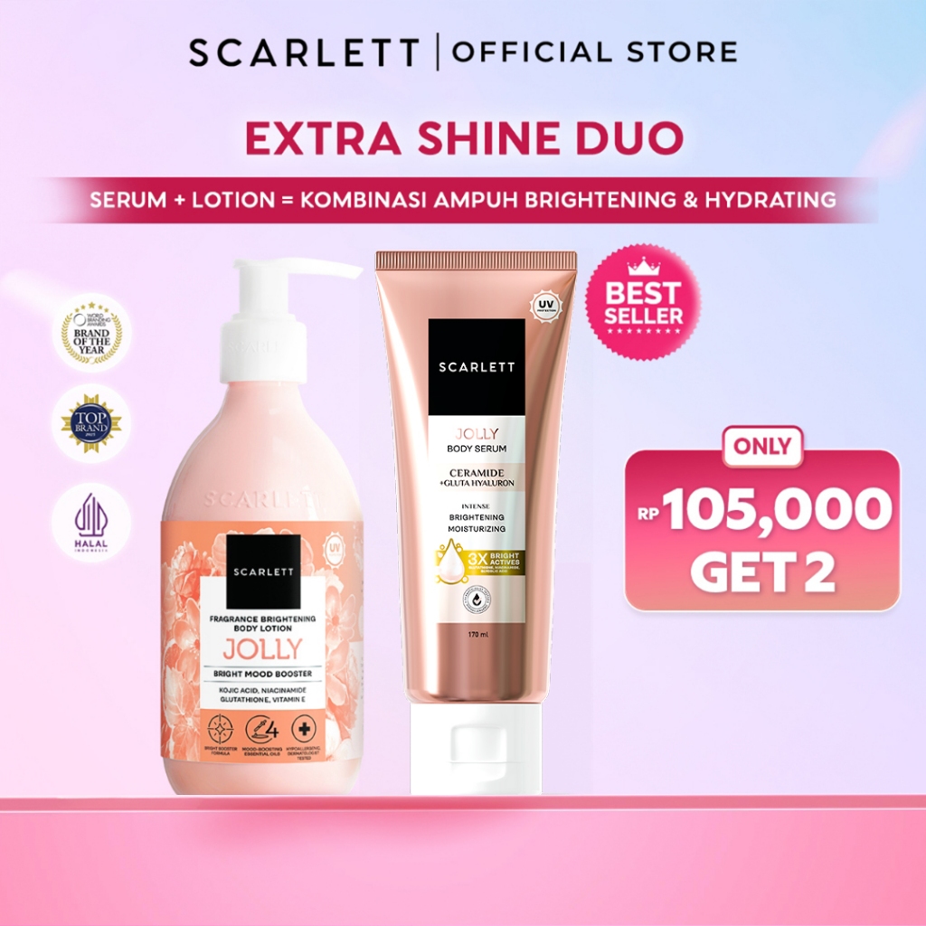 Scarlett Whitening Bundle Extra Cerah - Fragrance Brightening Body Lotion Bright Mood Booster