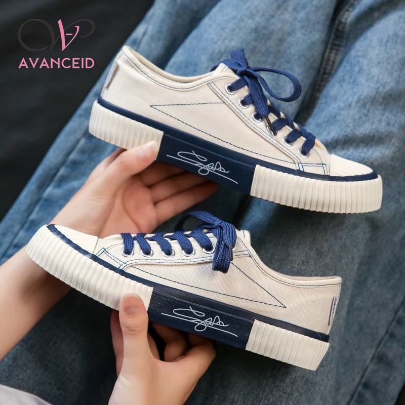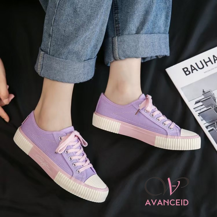 AVANCEID 1890 Sepatu Sneakers Wanita Canvas Kerja Sekolah Hitam