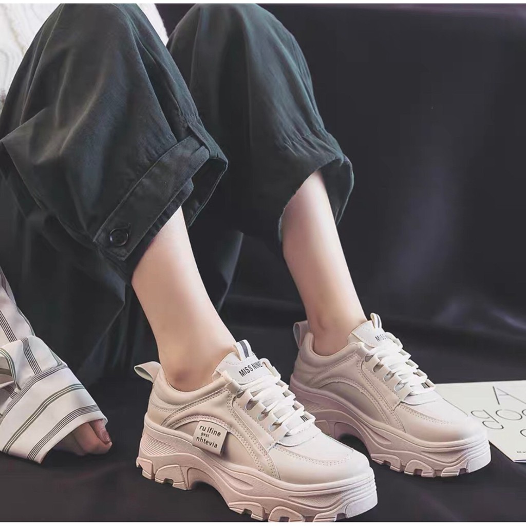 AVANCEID SIZE 36-43 1858 Sepatu Sneakers Wanita Sekolah Kerja Cream Hitam