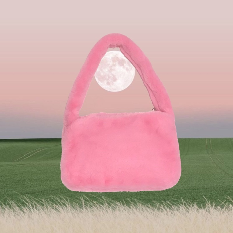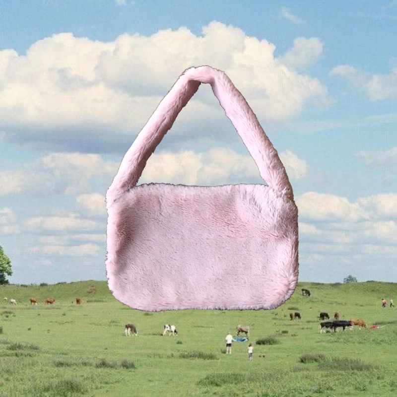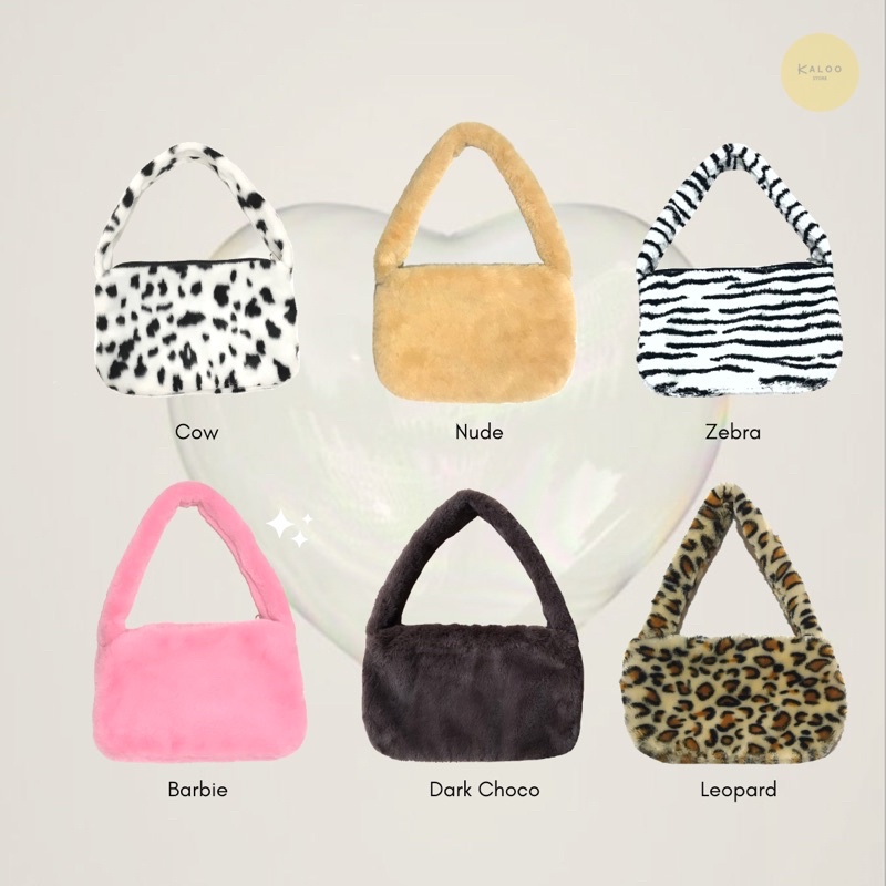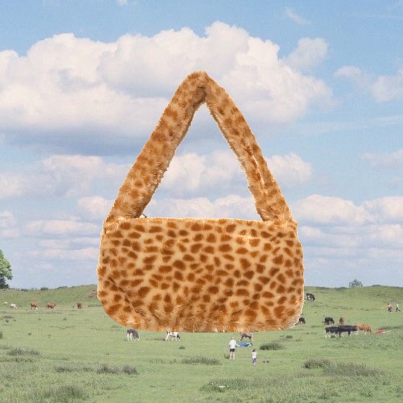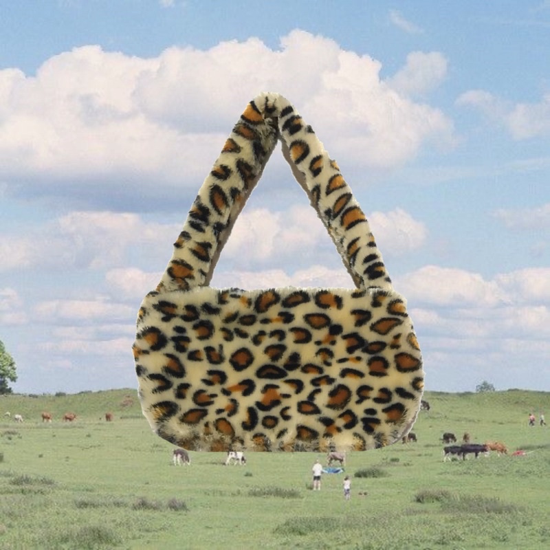 READY Fluffy Bag/ Tas Bahu Fur Bulu Hewan/ Animal Shoulderbag/ Y2K Aesthetic Handbag Retro cow