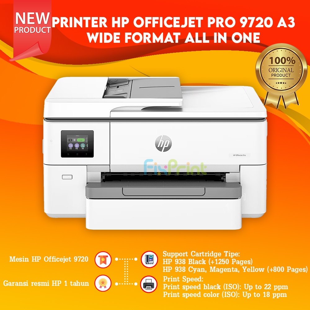 Printer HP 9730 Multifungsi AIO ADF Fax Wireless Officejet 9720 All-In-One Print Scan Copy LAN Fax WiFi A3 Bergaransi Original