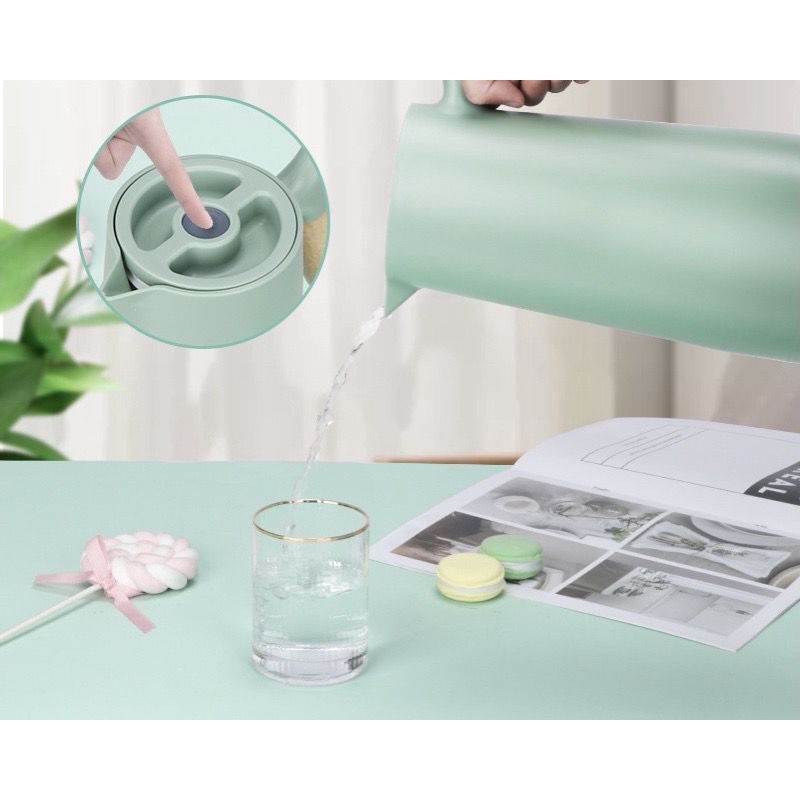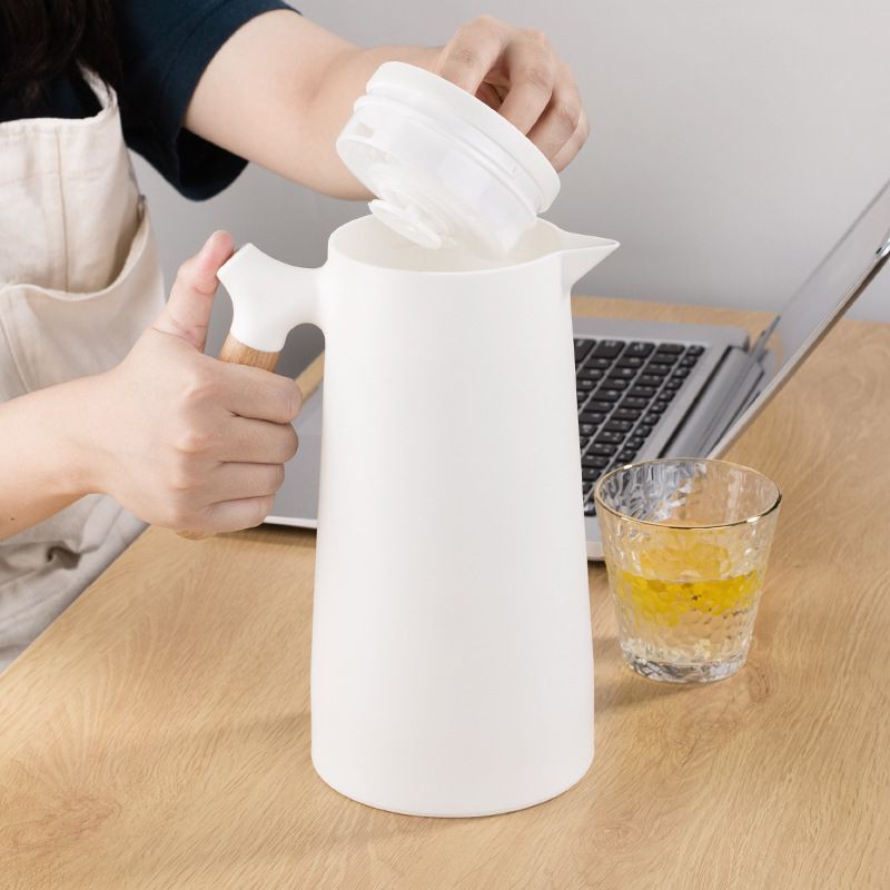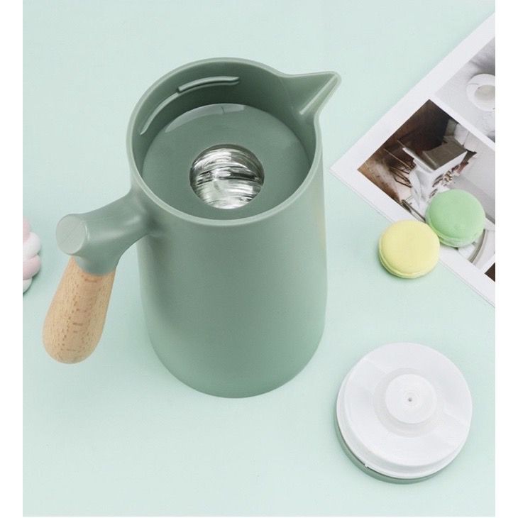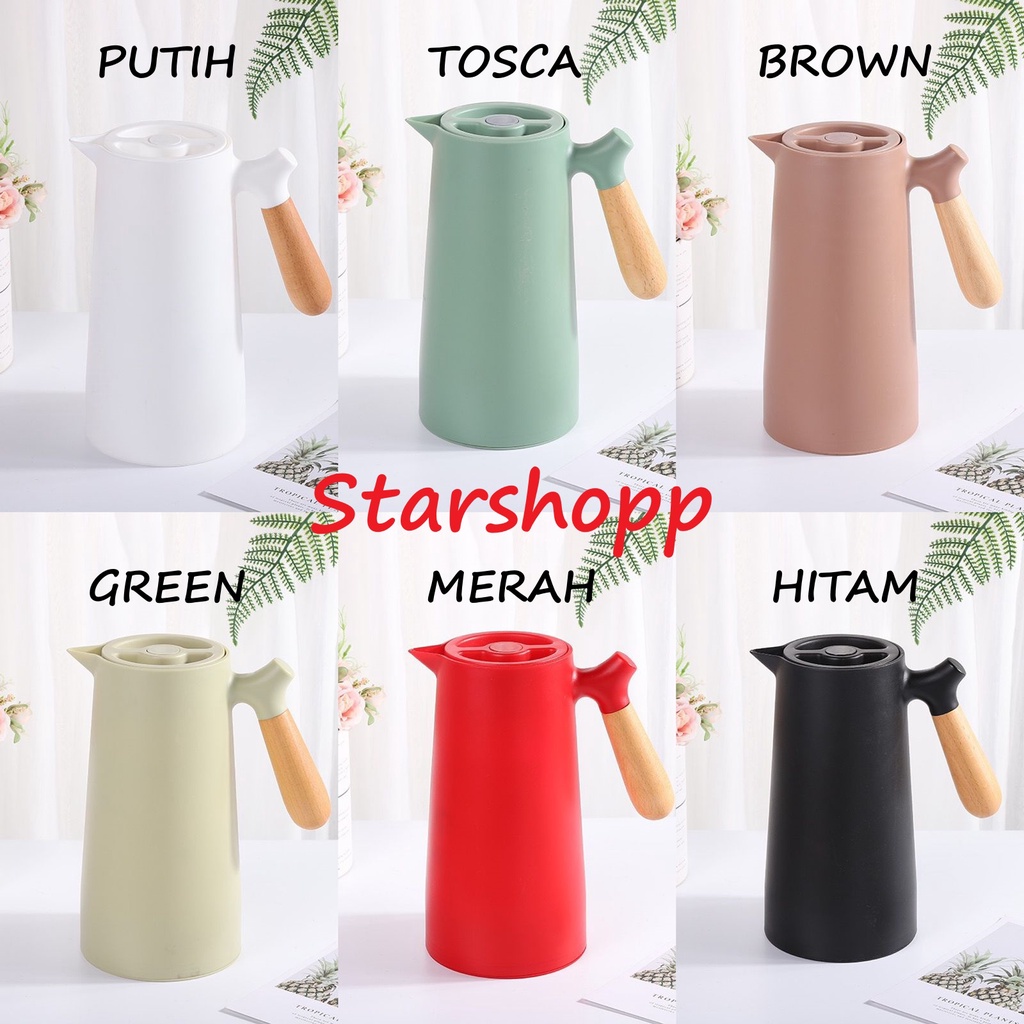 Termos Teko Kaca Air Panas Gagang Kayu Elegant Cantik Kapasitas 1L 1000ml PR121