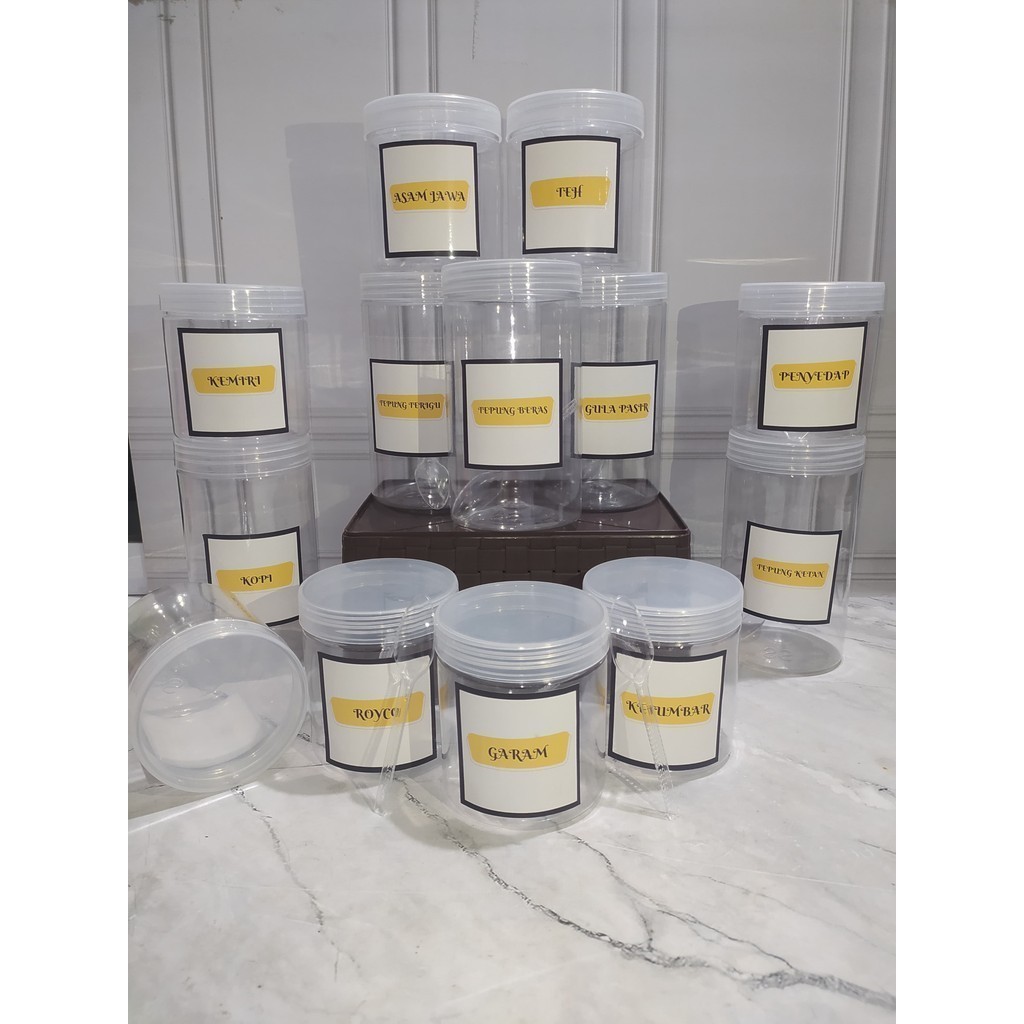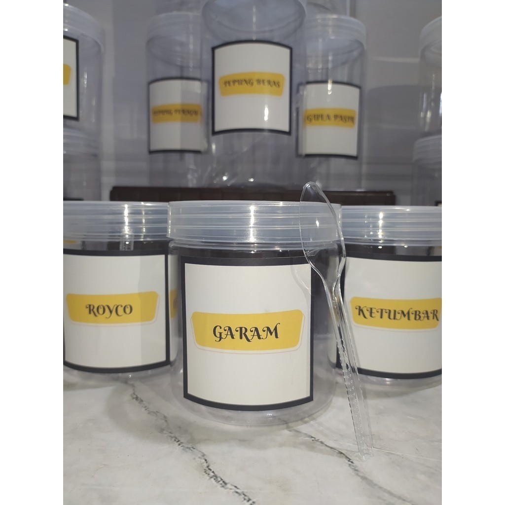 Toples Tempat Bumbu Dapur 500ml 1000ml Aesthetic Free Sendok Label Waterproof