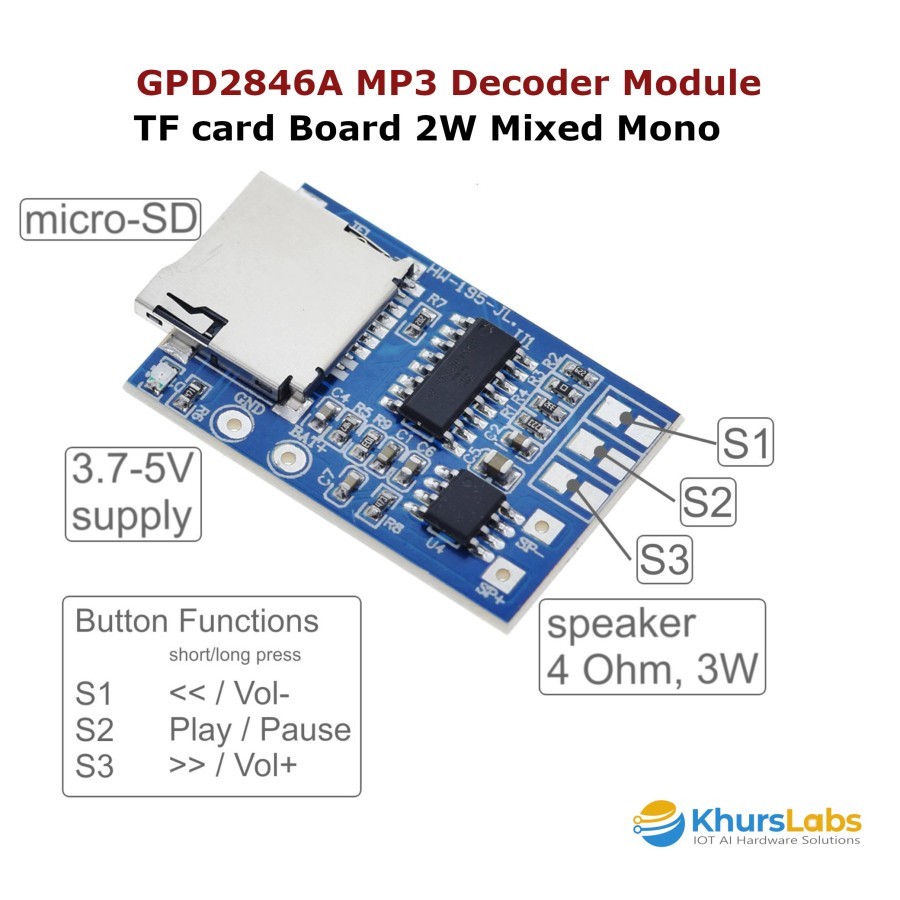 TF card MP3 decoder board decoding module 3.75V 2W Mono Module