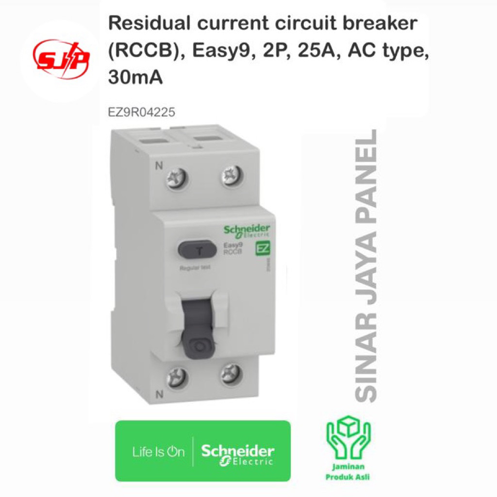 RCCB ELCB Schneider Easy9 2P 25a 30ma 2 Pole 2 phase EZ9R04225 Original