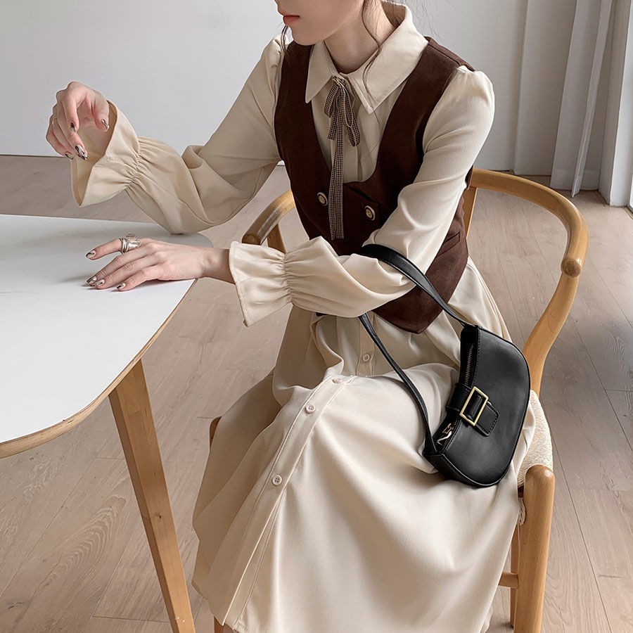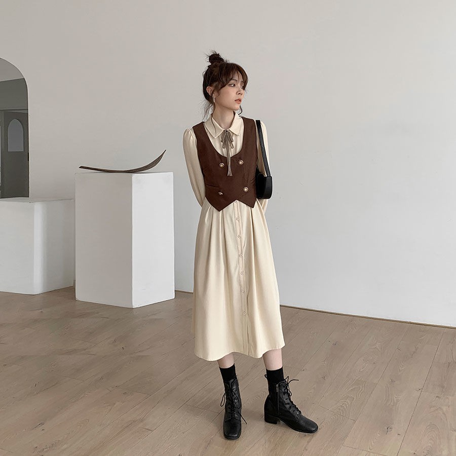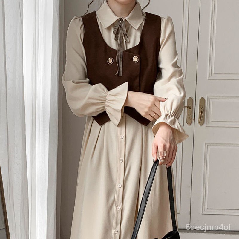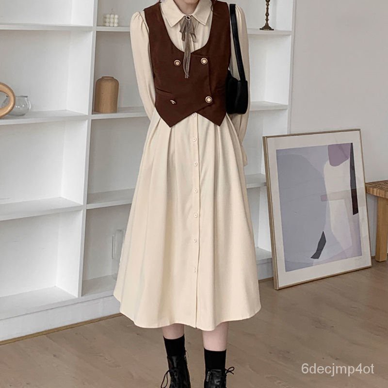 Musim Gugur dan Musim Dingin2023Baru A-Line Dress Bahasa Perancis Retro Gaun Dua Potong Rompi Set Ga