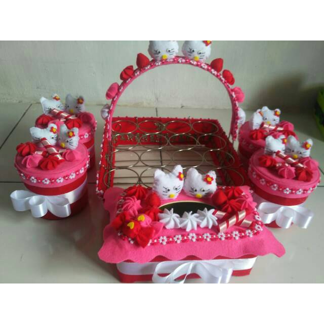 Toples Hias Flanel Karakter Helokity Kombinasi Pink dan Merah