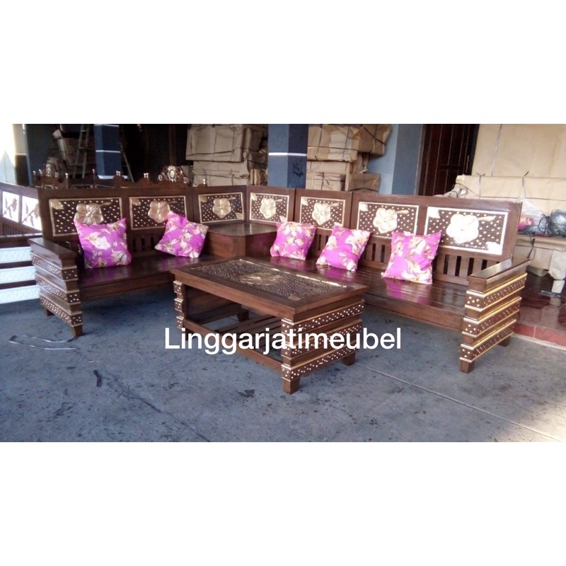 KURSI SUDUT ROBOT JATI TERMURAH KURSI TAMU MINIMALIS FREE BANTAL/ KOTAK TISU JATI