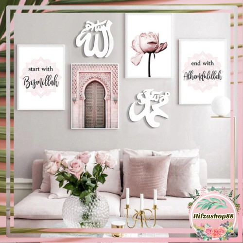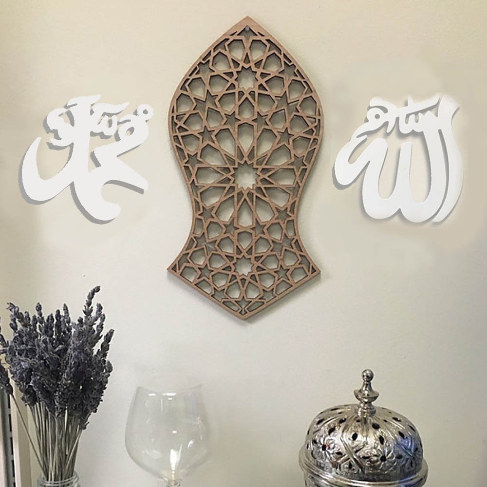 Hiasan Dinding Kaligrafi Lafadz Tulisan Allah - Muhammad Tempel DINDING Bahan WPC - 1Set dapat 2