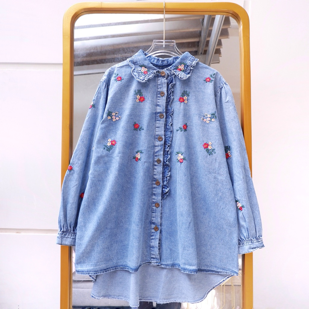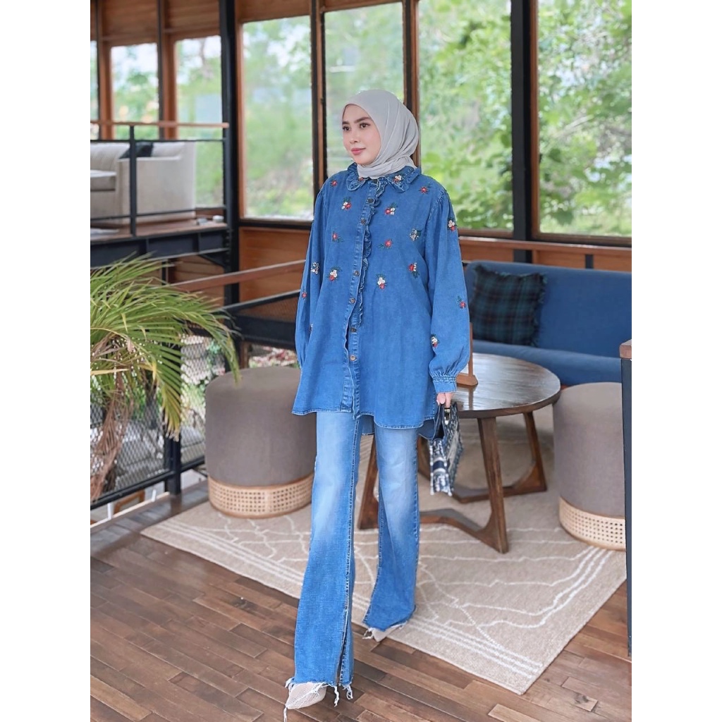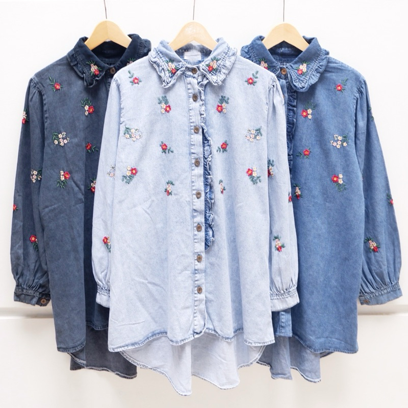 Sonya Jeans Ruffle / Kemeja Jeans Bordir Premium