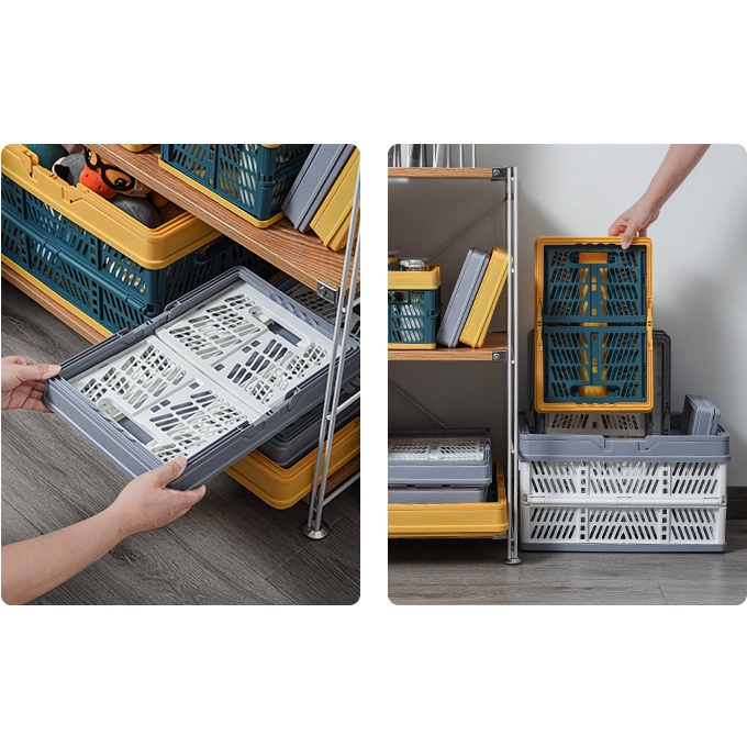 Ukuran S Keranjang Lipat Serbaguna Praktis Portable Foldable Basket Storage Handle Pegangan