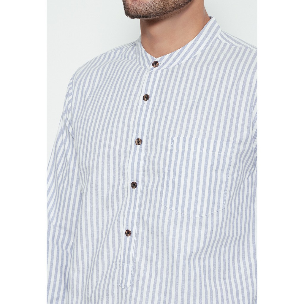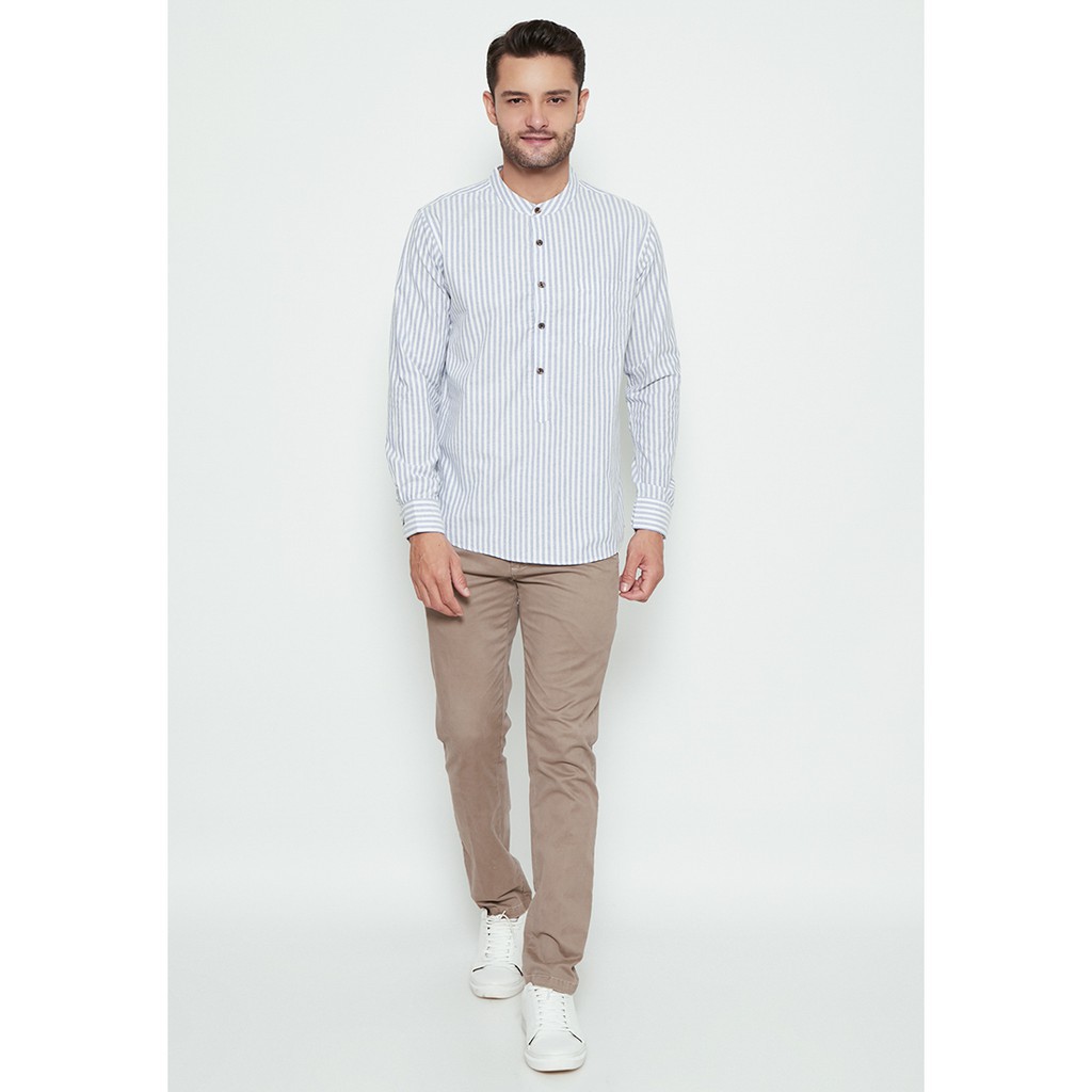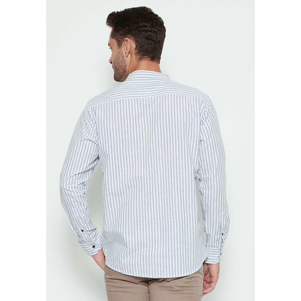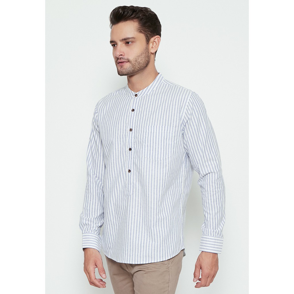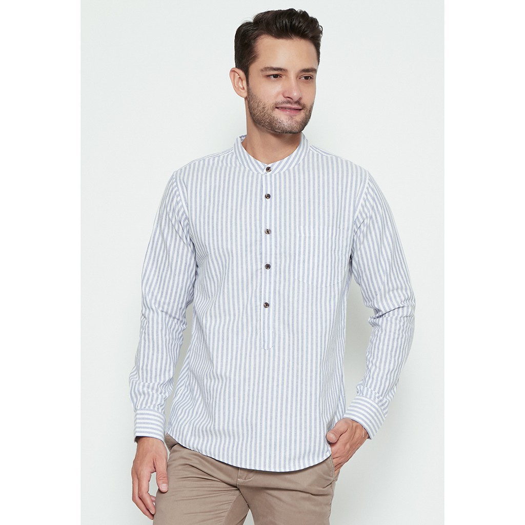 GTS Kemeja Pria Shanghai Salur Stripe Panjang Warna Biru 1642B