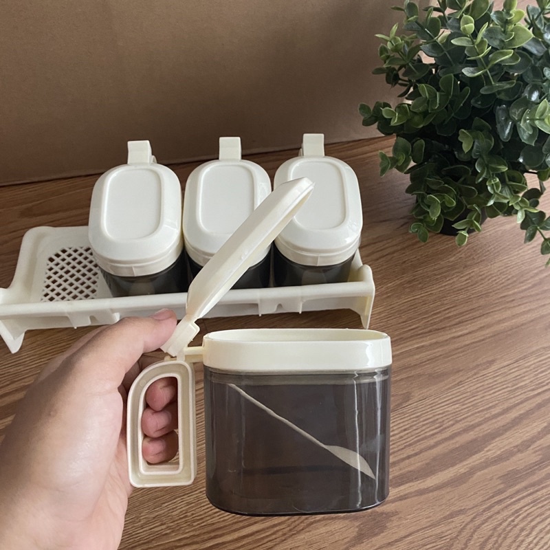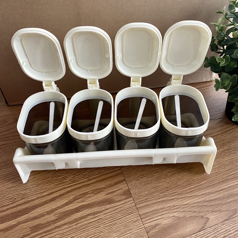 TEMPAT BUMBU 4in1 BAHAN PLASTIK MODEL AESTHETIK PUTIH