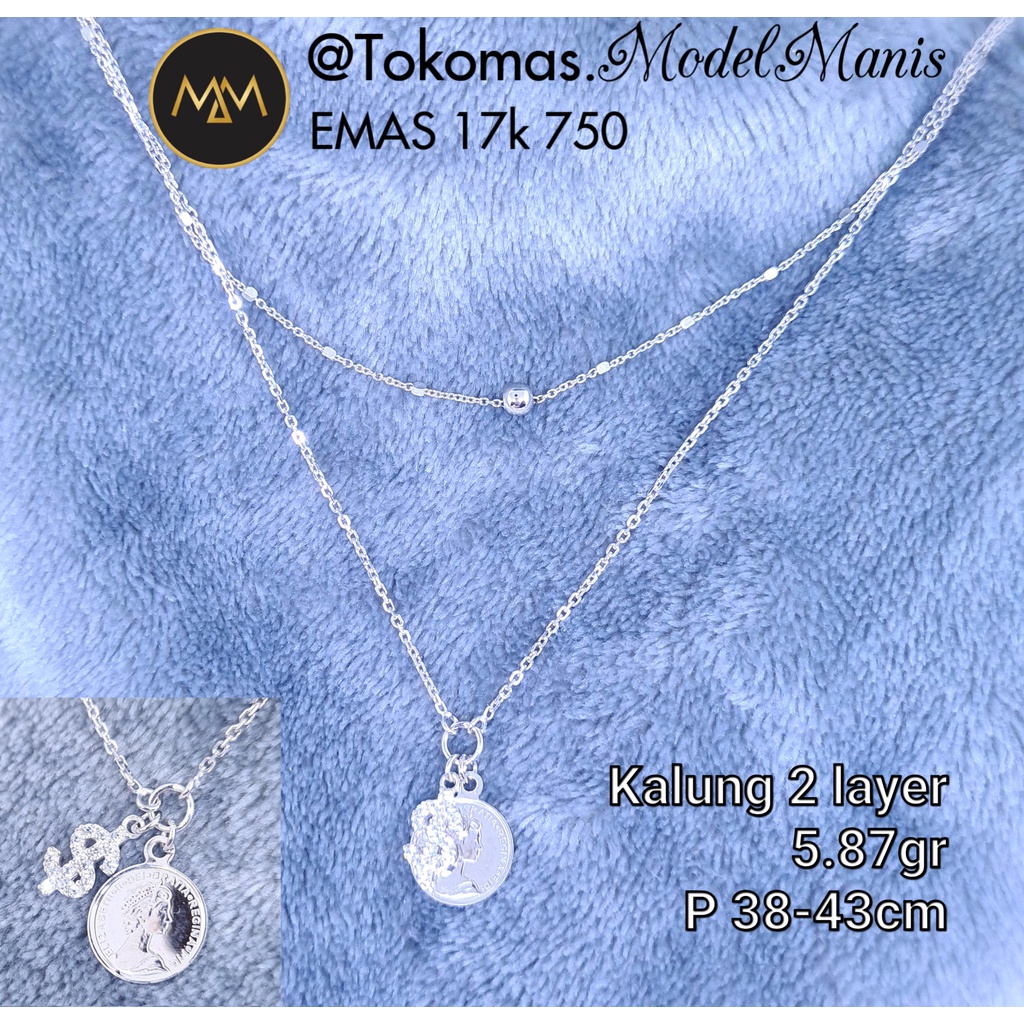 Kalung 2 layer Dollar Elisabeth jedar nori emas putih 750 kadar 17k