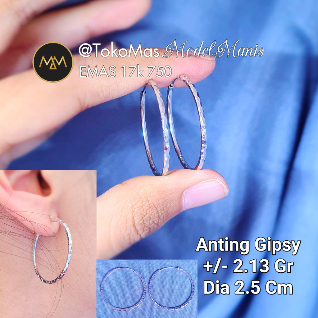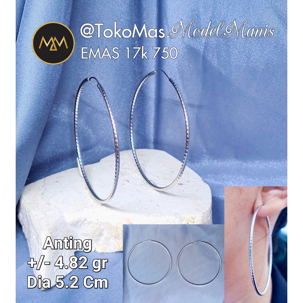 Anting Gipsy lebar emas putih 750 kadar 17k