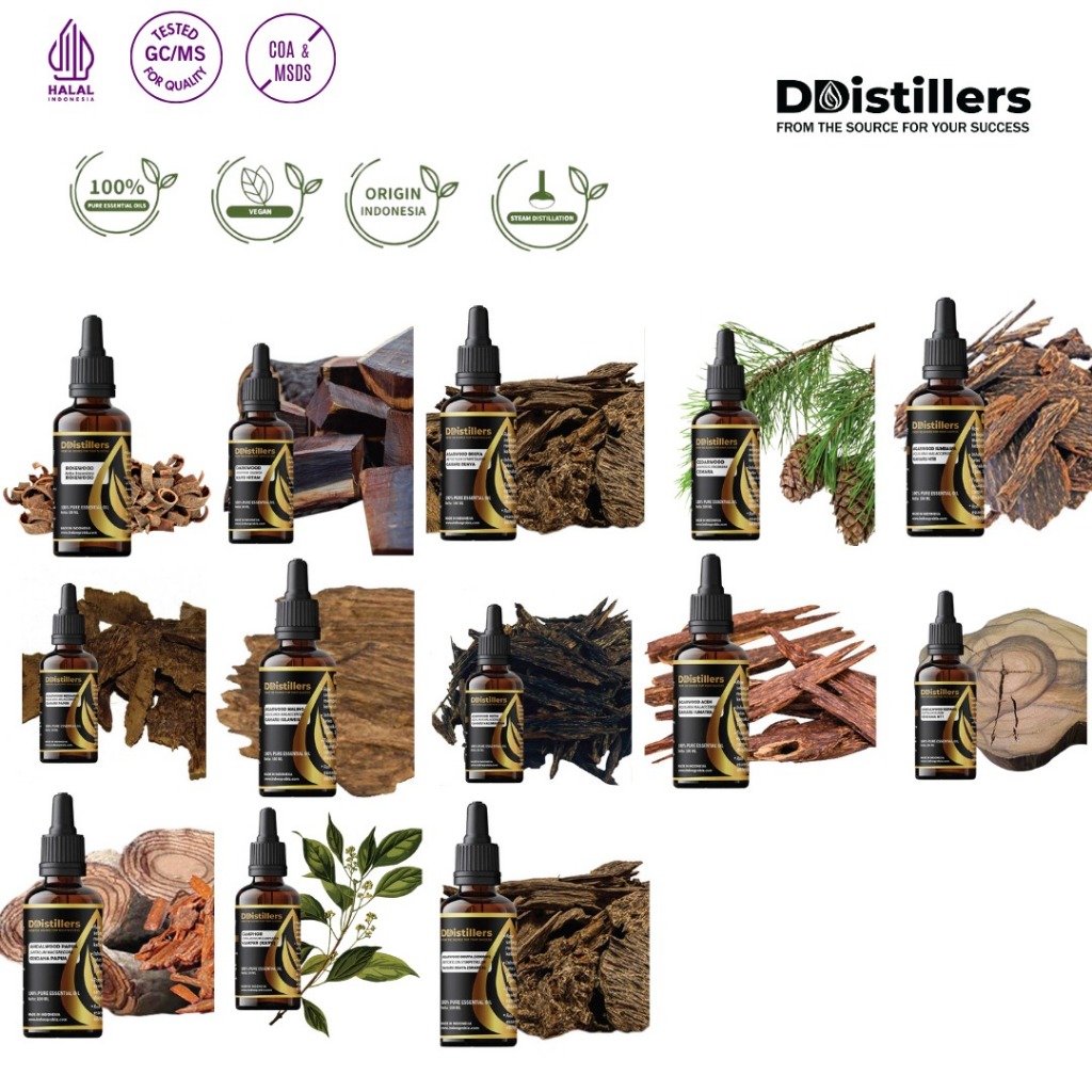 [50-100ML] DDistillers Essential Oil Agarwood, Camphor Wood, Cedarwood, Darkwood, Rosewood, Sandalwood / Aromatherapy Woody aroma kayu kayuan Murni 100%,