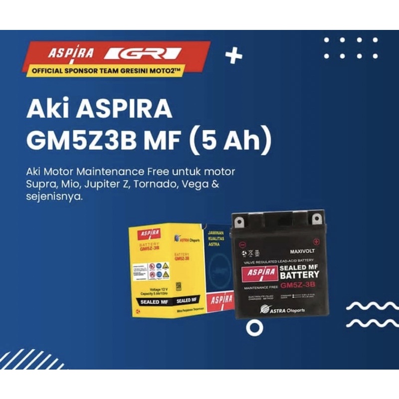 AKI KERING GRAND MIO SPORTY JUPZ 12V 5Ah GM5Z-3B ASPIRA