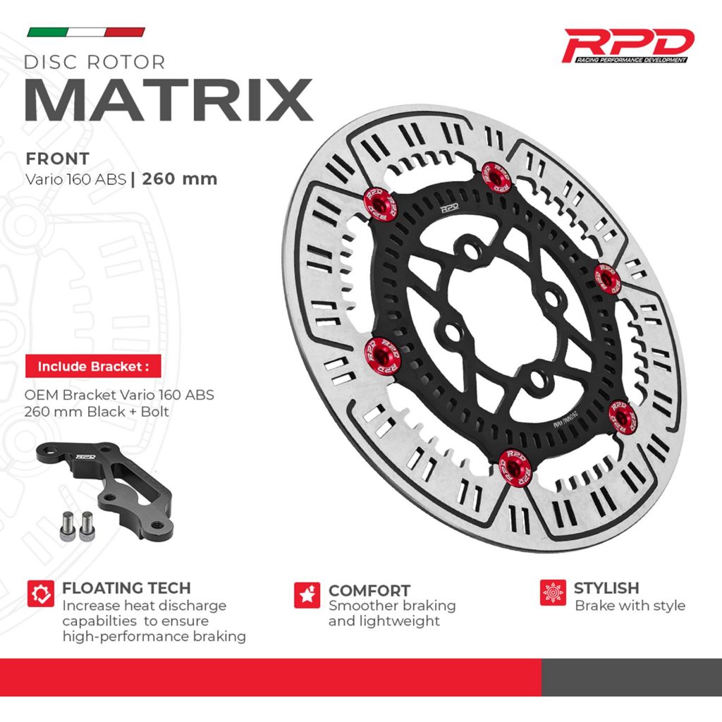 RPD Matrix Front Floating Disc Rotor 260MM For Vario 160 (ABS) + Bracket