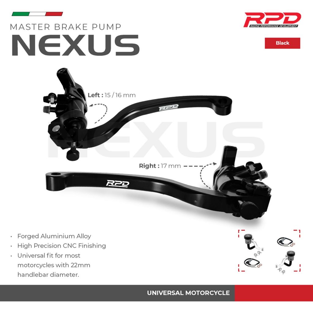 RPD Nexus Master Cylinder Kaliper Rem Black dengan Brake Switch