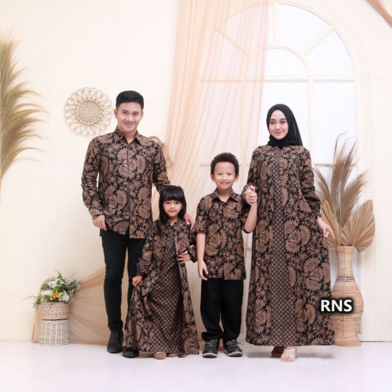 Batik Couple Keluarga Gamis Busui Motif Prasasti Batik Keluarga Seragam