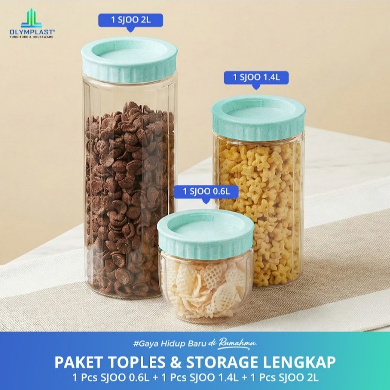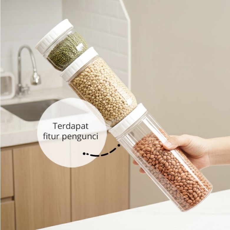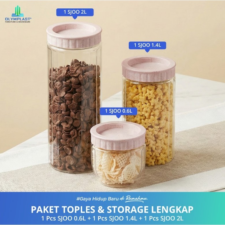 Paket Toples & Storage Lengkap / 1Pcs SJOO Storage Jar Organizer 0.6L + 1Pcs Storage Jar Organizer 1.4L + 1Pcs Storage Jar Organizer 2L